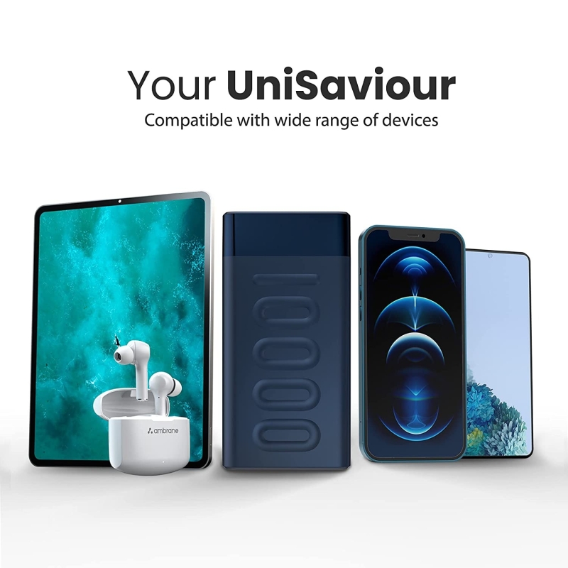 • Power-packed 10000mAh- Lithium Polymer 10000mAh capacity allows you to efficiently charge your devices multiple times. It can charge iPhone 12 – 2 times, and OnePlus Nord - 1.5 times.
