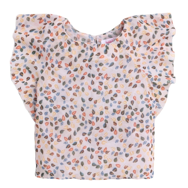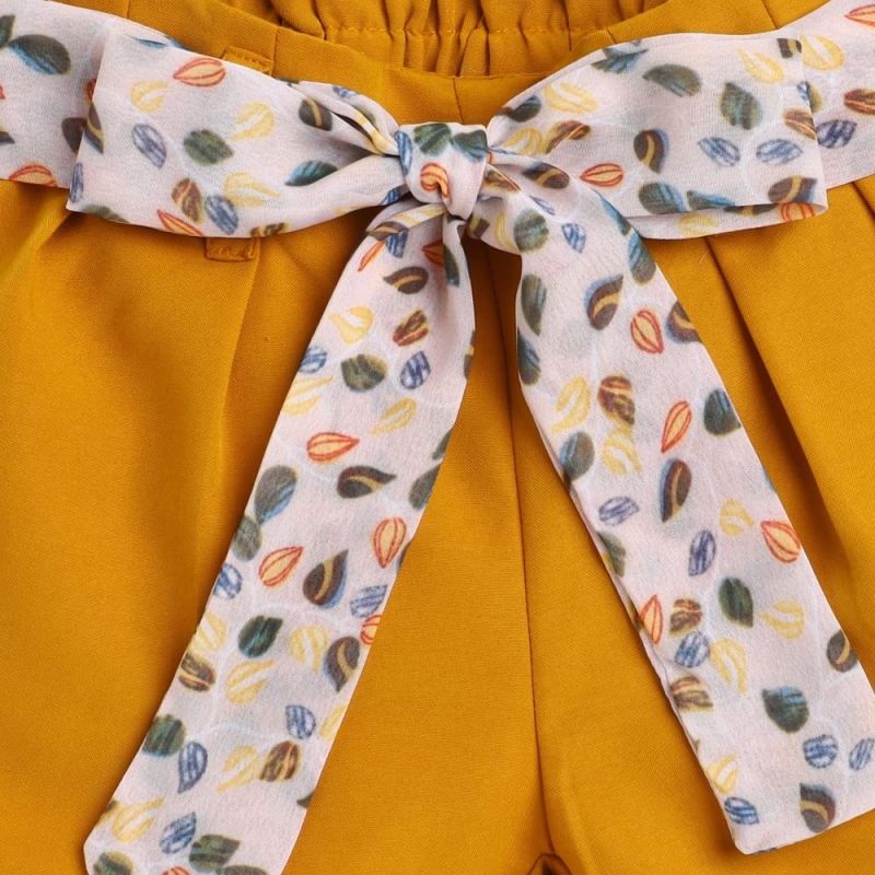 الحجلة الفتيات البوليستر طباعة الأزهار بلوزة والسراويل مجموعة في اللون الأصفر