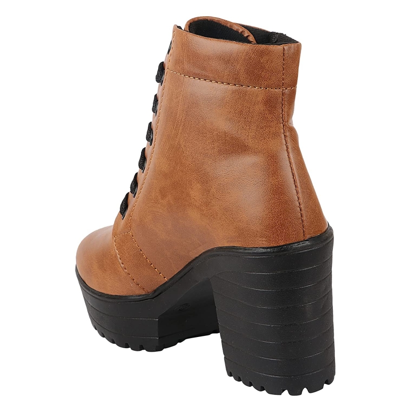 Women Zipper & Lace Up Block Heeled Boots