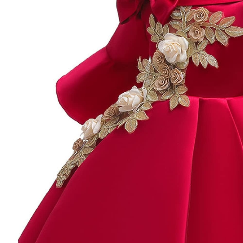 This Floral And Bow Applique Bell Sleeves Dress from Hopscotch is a must-have!
