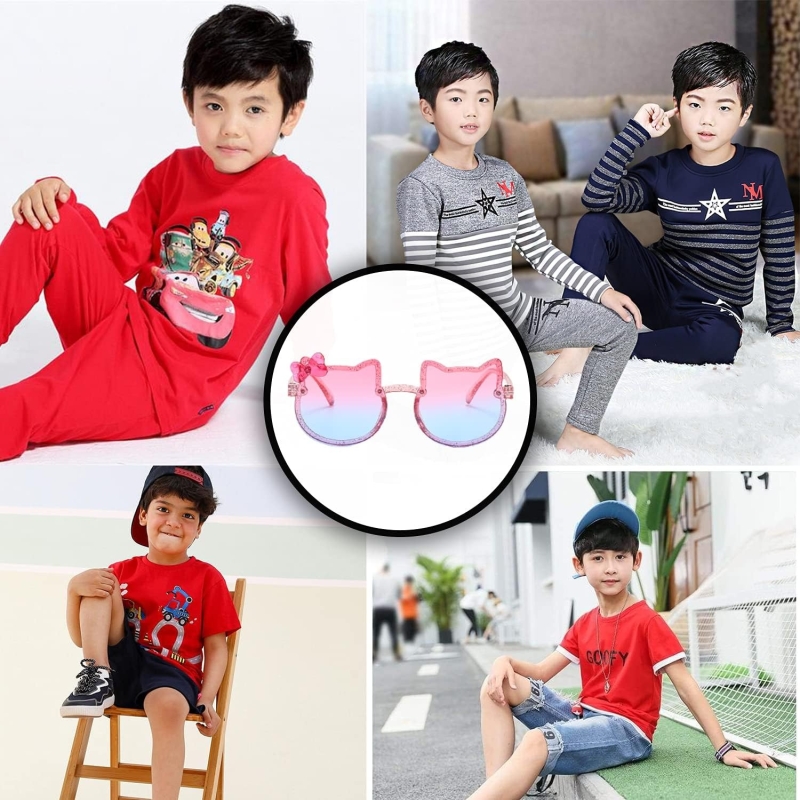 Every color suits kids daily or party wear well and these colors are all trendy colors in all the seasons. Glasses feature UV400 protection lenses that efficiently filter out the sun radiation.