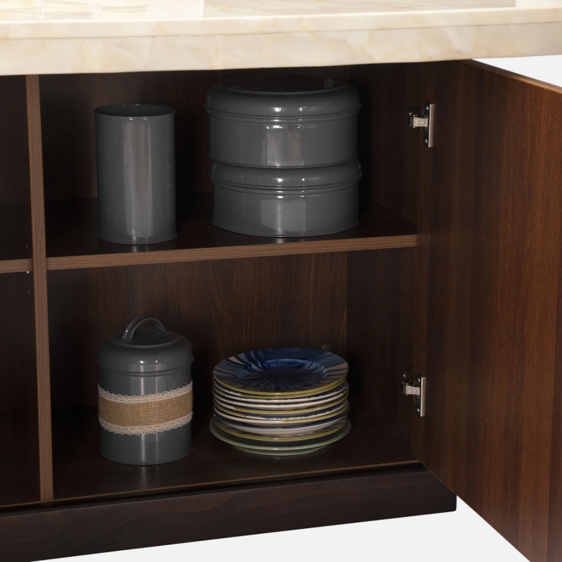 • The table base features cabinet storage with ample space for dining essentials