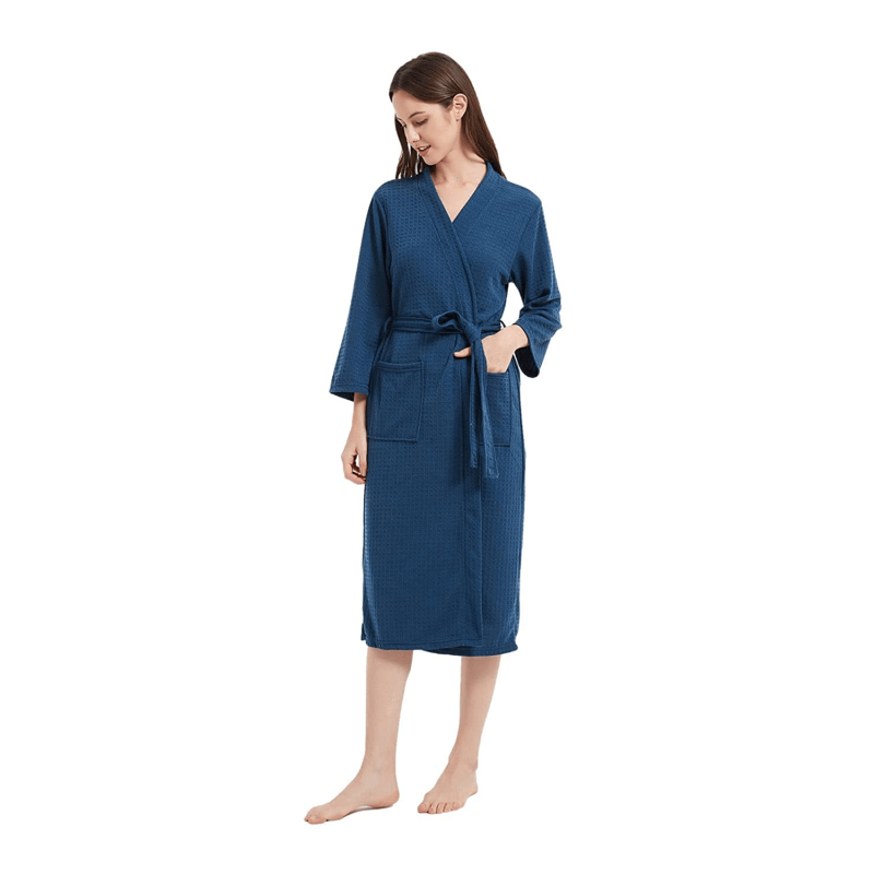 The women's bathrobes adopt improved non-cotton waffle fabric, they will be more soft, breathable, and lightweight than the one that contains cotton, and there will be no shrinkage after washing.