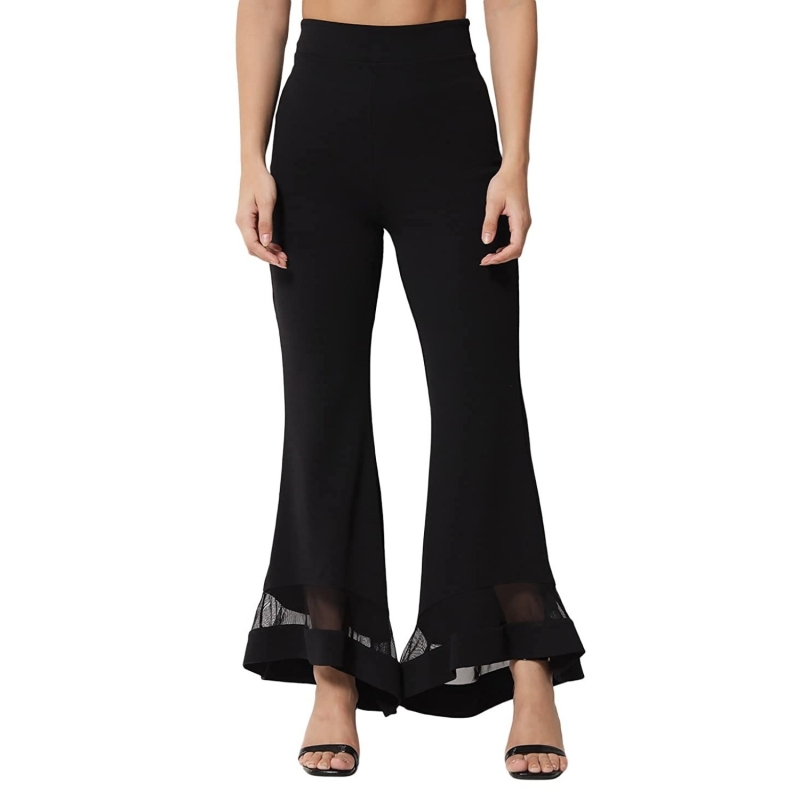 KOTTY Women Regular Length Jet Black Solid Trousers