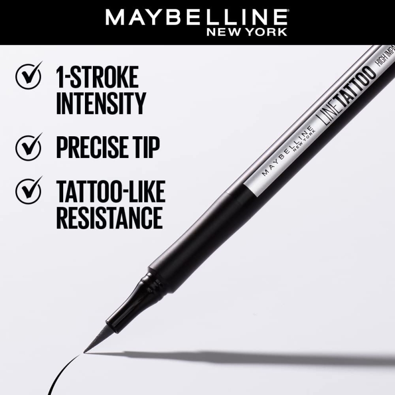 Contents: 1x Maybelline New York Line Tattoo High Impact Liner, Intense Eyeliner, Long-lasting, Felt-tip Applicator, Black