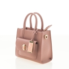 • Pink quilted handheld bag, has a zip closure