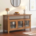 • Taking the high road.The Rhodes sideboard is the perfect mix of classic style and versatile storage. Be it in the dining room or hallway, this is at home anywhere. We love the textured side panels, which subtly elevate the design. The open shelf and tabletop have plenty of display space. Use the glass front cabinets to stow away crockery, appliances, and glassware.
