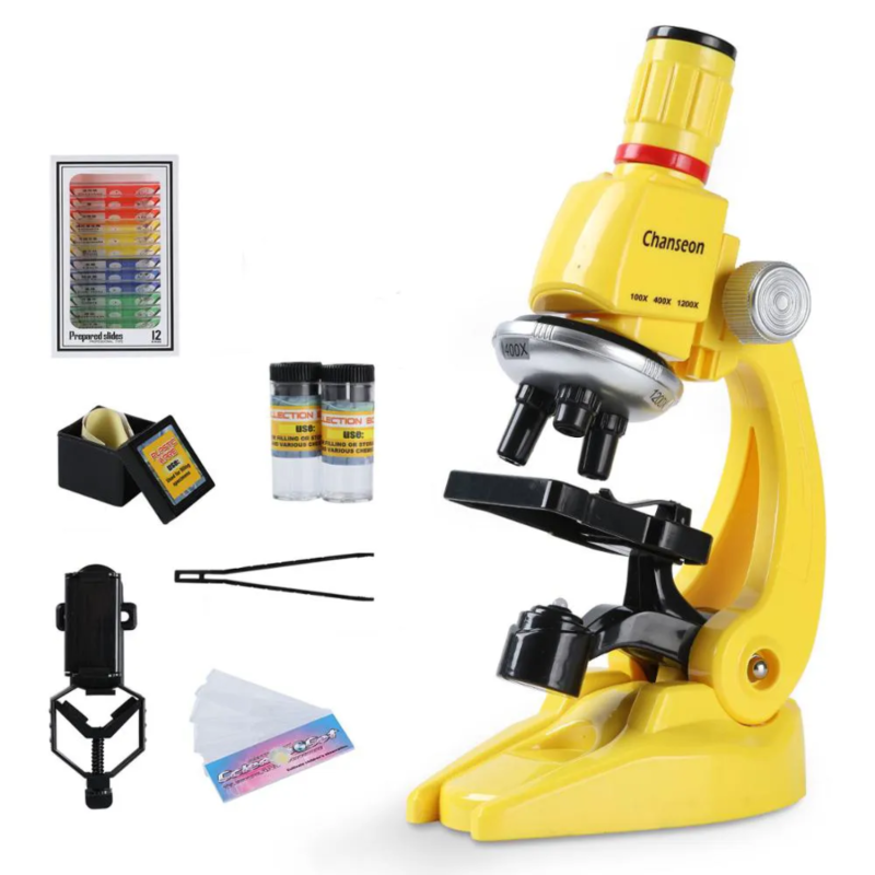 Science Microscope Kit with LED 100/400/1200x With Slides For Beginner
