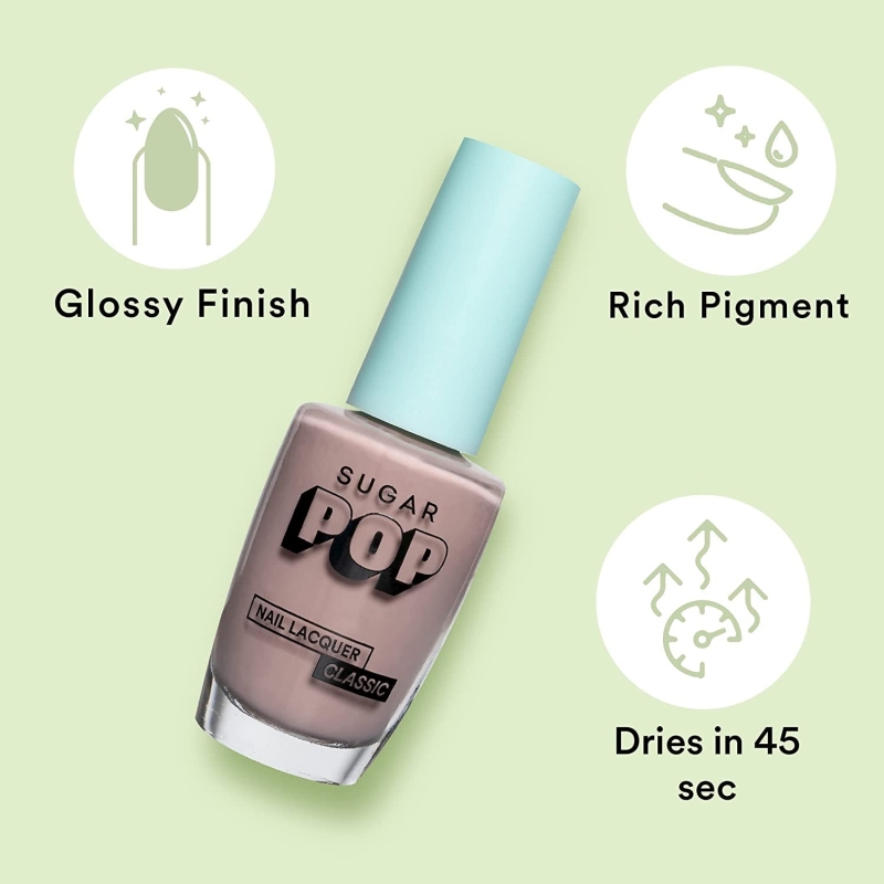 SUGAR POP NAIL LACQUER has a quick drying formula that dries in 45 seconds giving you a perfectly glossy finish.