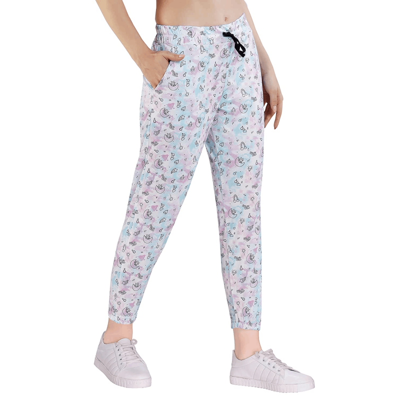 • MATERIAL: Made of the best quality knitted stretchable fabric, these printed track pants for women are a perfect fit for all-day as well as night-long wear.