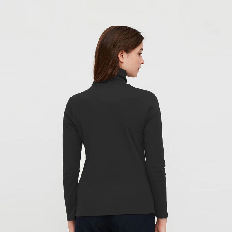 Women Black Solid Turtle Neck T-shirt